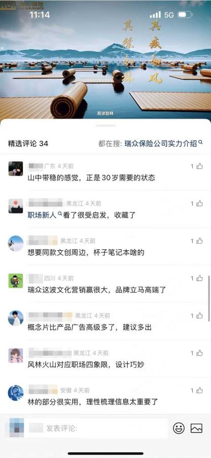 瑞众保障从《孙子兵法》“风林火山”的古典灵敏中索要现代都市东谈主群生计玄学,使文创越过器物层面,成为可感、可用的精神依托,为保障品牌注入文化厚度与厚谊温度,彰显了品牌树立与中华优秀传统文化相皆集的灵活现实。